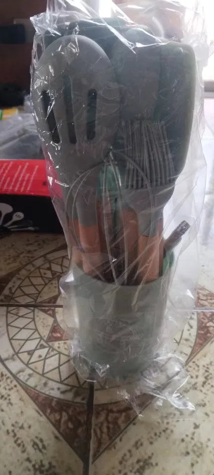 Our Silicone Kitchen Tools Set is meticulously crafted for those who love both cooking and style. The heat-resistant materials ensure that the tools won't warp or melt, while the non-stick surface makes turning and flipping foods a breeze. Their elegant wooden handles provide a comfortable grip and add a touch of sophistication to your kitchen decor. Whether you're a professional chef or a home cook, these utensils are designed to meet all your culinary needs with ease and elegance. A must-have addition for anyone looking to upgrade their kitchen experience.